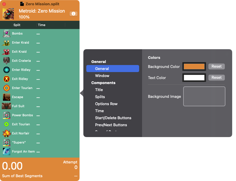 Splitter gives you plenty of options to change how your run appears. Want to change the background color? View Sum of Best? Splitter makes it easy to do it all.